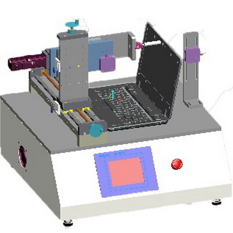 显示器横向推拉试验机用于笔记本的上盖开合阻力的测试。前置红外位移传感器可测试上盖打开的位移量,后置位移传感器可以检测上盖在推力撤销后的振动情况。